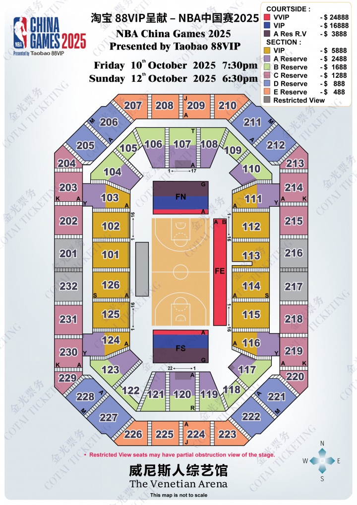 08月20日讯 NBA官方公布了2025年NBA中国赛的票务信息。